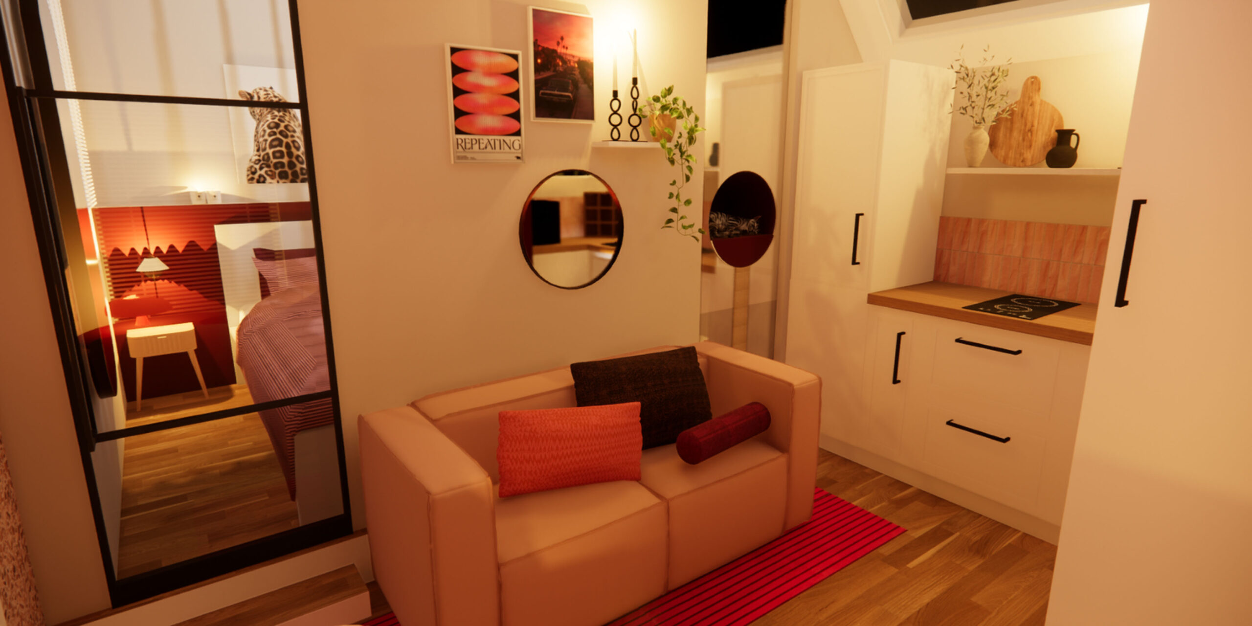 Voor het project van de studentenunit heb ik een unit mogen ontwerpen voor een zelfgekozen klant. Ik heb gekozen voor een goede vriendin van mij. Ze wilde dat het een gezellige ruimte zou worden, met veel roze en rode kleuren en printjes. Dit is duidelijk terug te zien in mijn ontwerp.