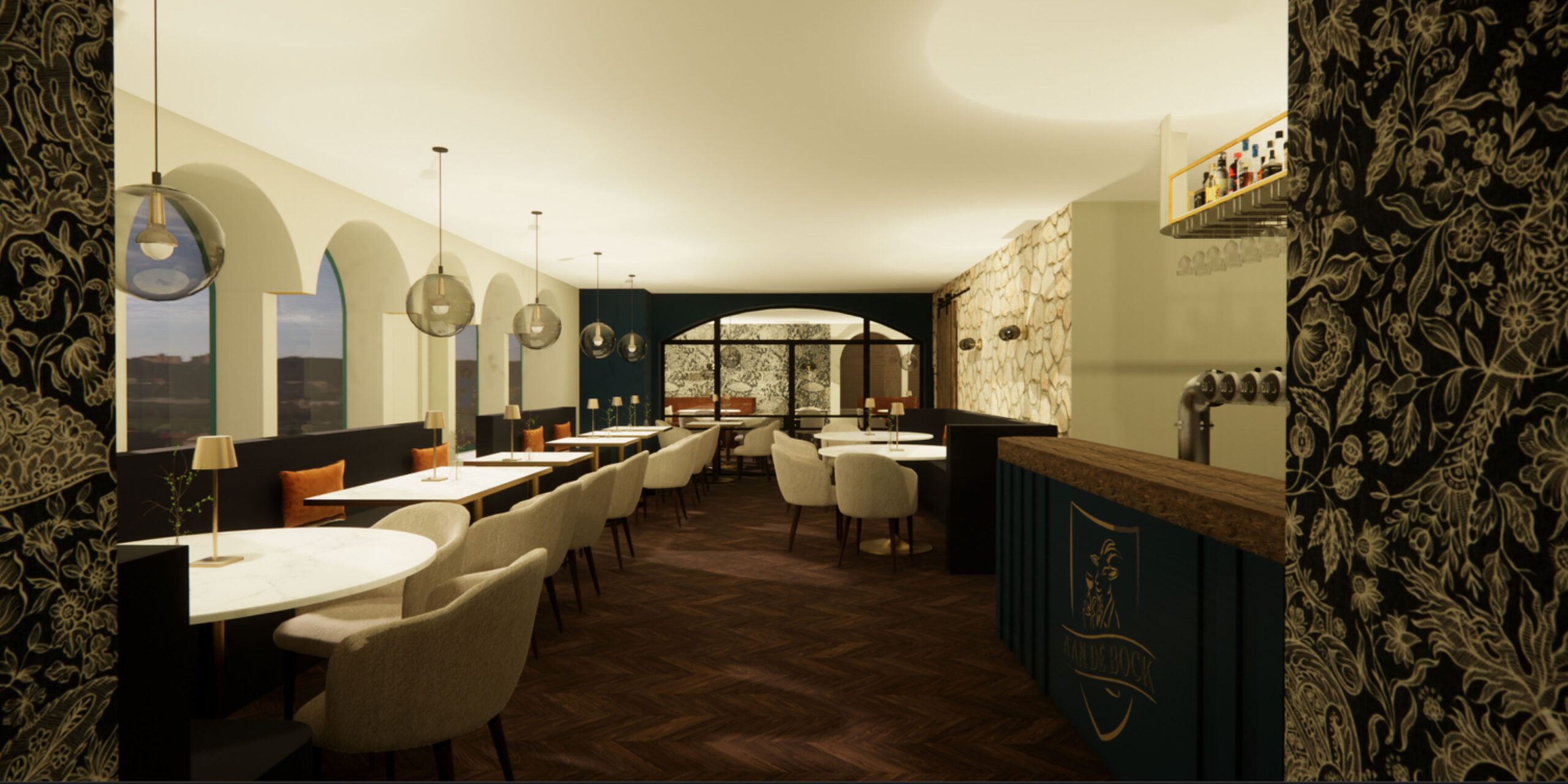 Voor de iBuzz-opdracht heb ik het restaurant Aan de Bock ingericht, omdat het mij erg aansprak. De huidige inrichting was verouderd, dus de eigenaresse vroeg om een nieuw ontwerp. Ze wilde een luxe maar stoere uitstraling, waarin de huisstijl van Aan de Bock duidelijk terugkomt. Mijn ontwerp combineert een moderne uitstraling met herkenbare elementen van het restaurant.