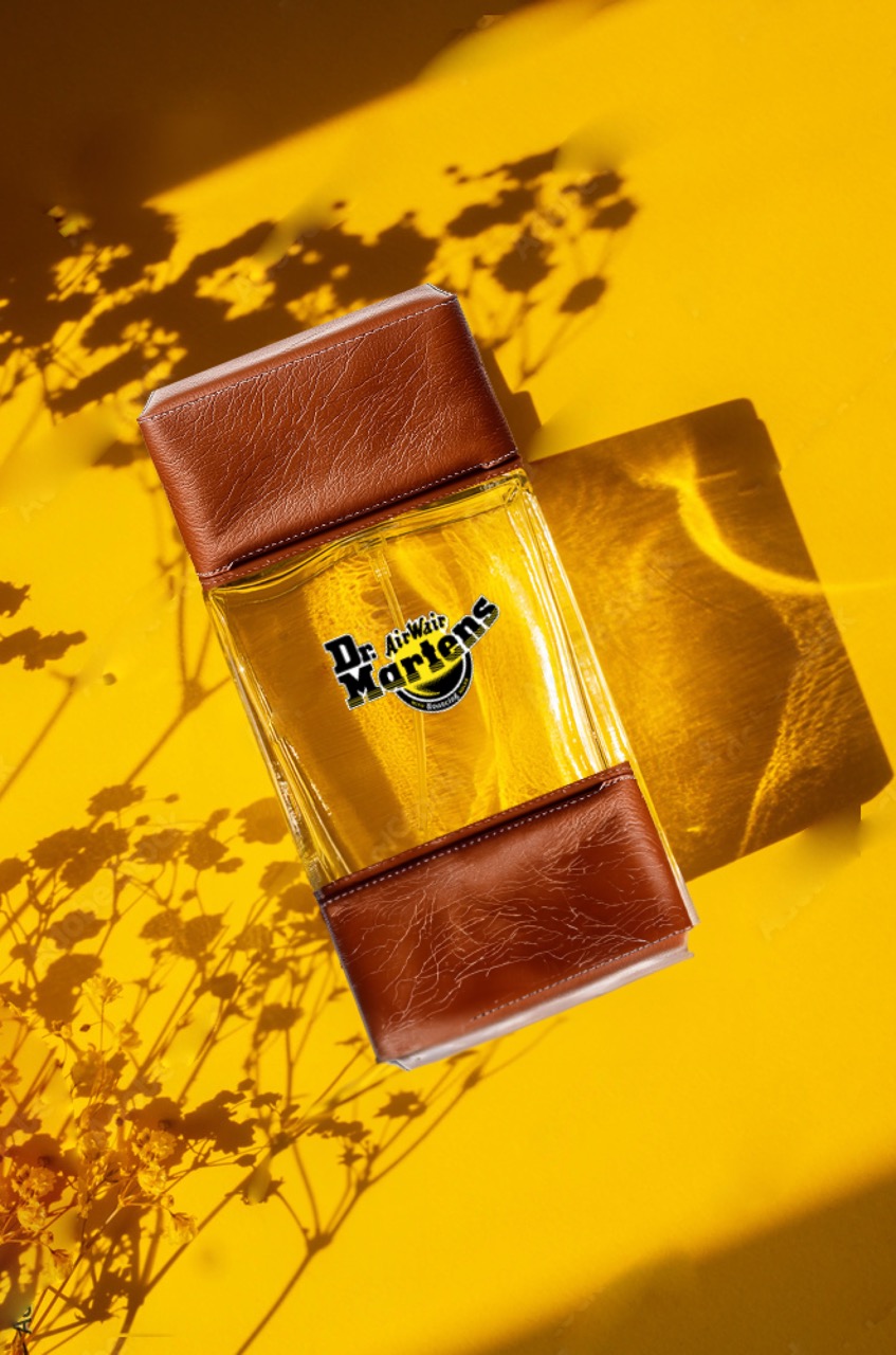 Voor dit werk heb ik een verpakking ontworpen voor een Dr. Martens-parfum. Ik heb leer gebruikt als centraal materiaal, verwijzend naar het iconische, rauwe karakter van het merk. Door het warme kleurgebruik, sterke schaduwen en robuuste texturen vertaal ik de identiteit van Dr. Martens naar een visueel en tastbaar parfumconcept.