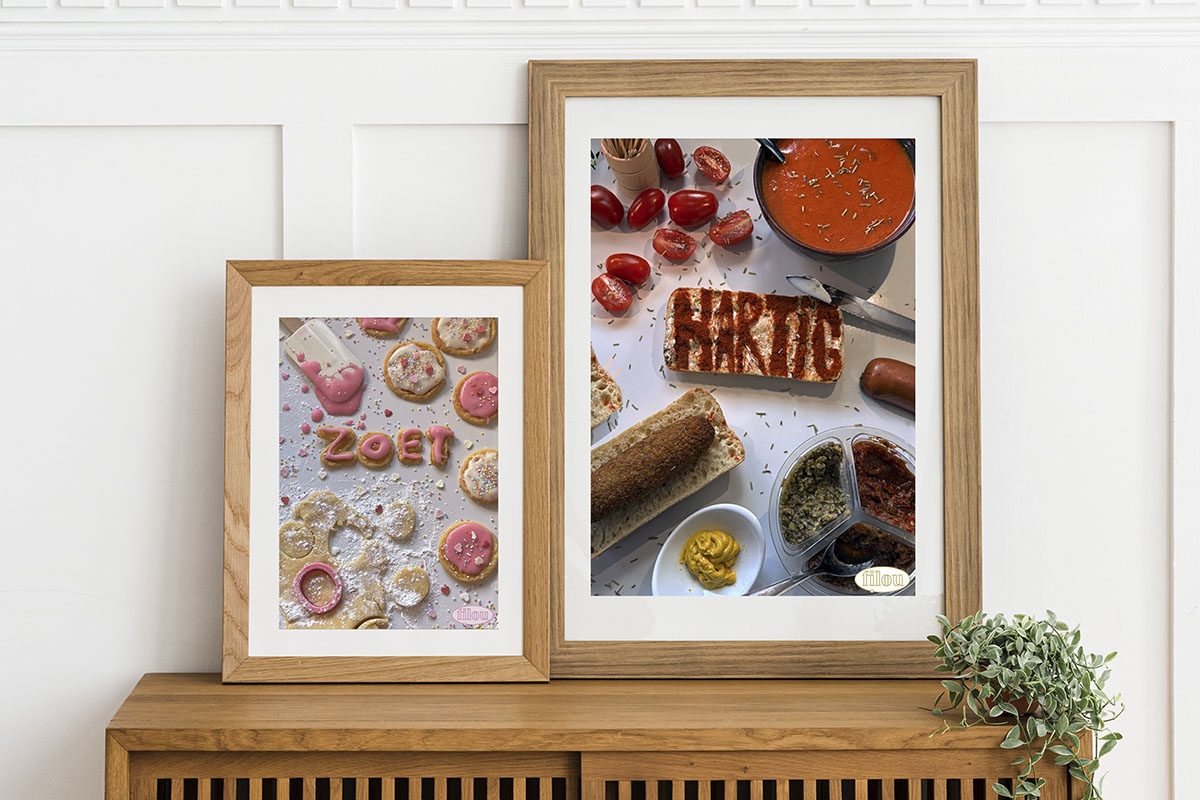 Voor deze opdracht heb ik twee posters gemaakt voor Filou, één hartig en één zoet. De posters moesten dit onderscheid ook uitbeelden, en het was de bedoeling dat er alleen maar eten en keukengerij voor gebruikt werd.