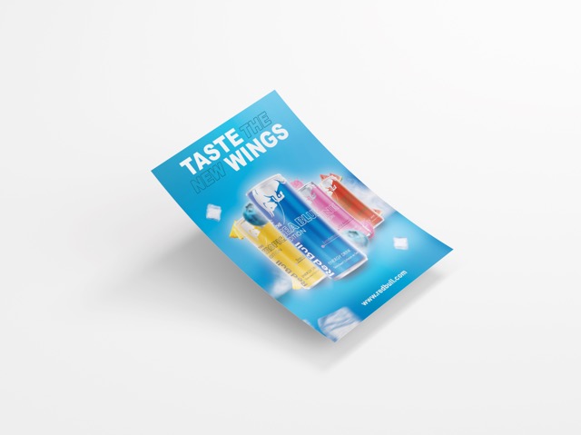 Voor deze IBUZZ-opdracht heb ik een reclameflyer gemaakt voor Red Bull. Hiervoor heb ik de vier nieuwe smaken gebruikt. Ik heb de flyer gemaakt in Photoshop, zodat ik gemakkelijk objecten kon toevoegen en bewerken.