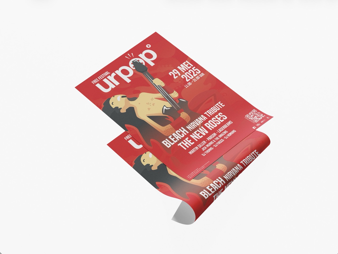 Voor deze opdracht moesten we een festivalposter maken voor Urpop. Ik heb geprobeerd de poster aantrekkelijk te maken door twee duidelijke kleuren te gebruiken: rood en wit. Daarbij heb ik een figuur toegevoegd die een instrument bespeelt. Ook heb ik met tekst geprobeerd de poster aantrekkelijk en goed leesbaar te maken.