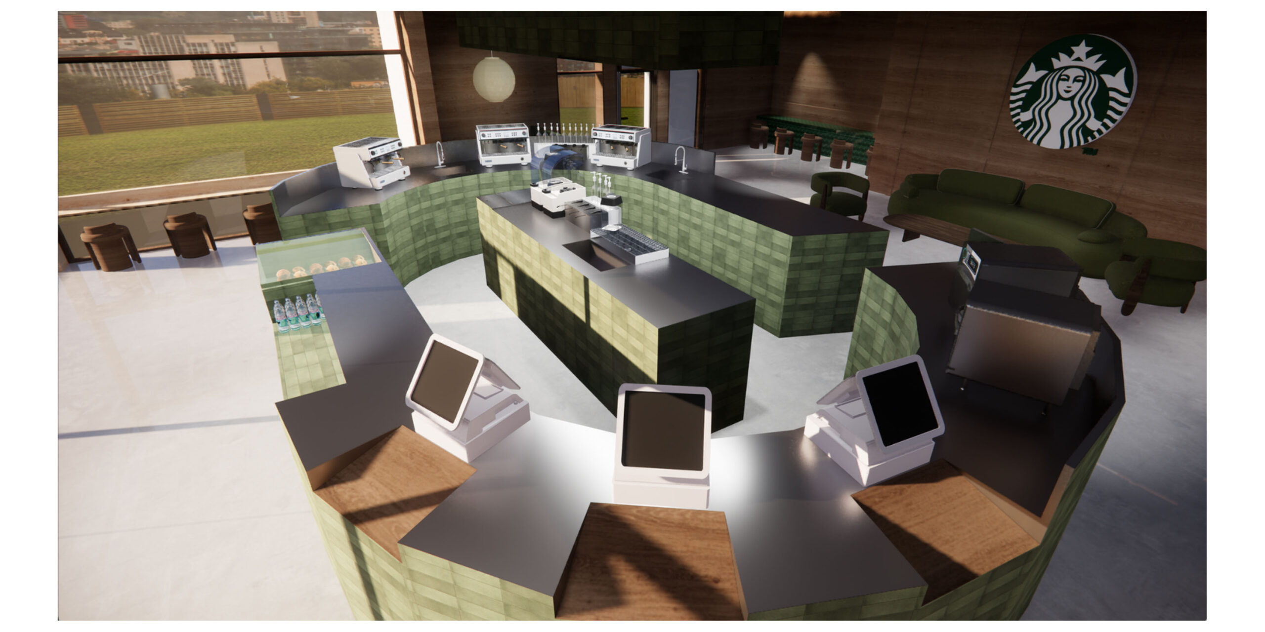 Dit project heb ik ontworpen voor Starbucks. Zij wilden graag een ronde bar die 360 graden toegankelijk is. De inrichting is zo ontworpen dat alle aandacht uitgaat naar de producten, merchandise en broodjes. De sfeer is industrieel en modern.